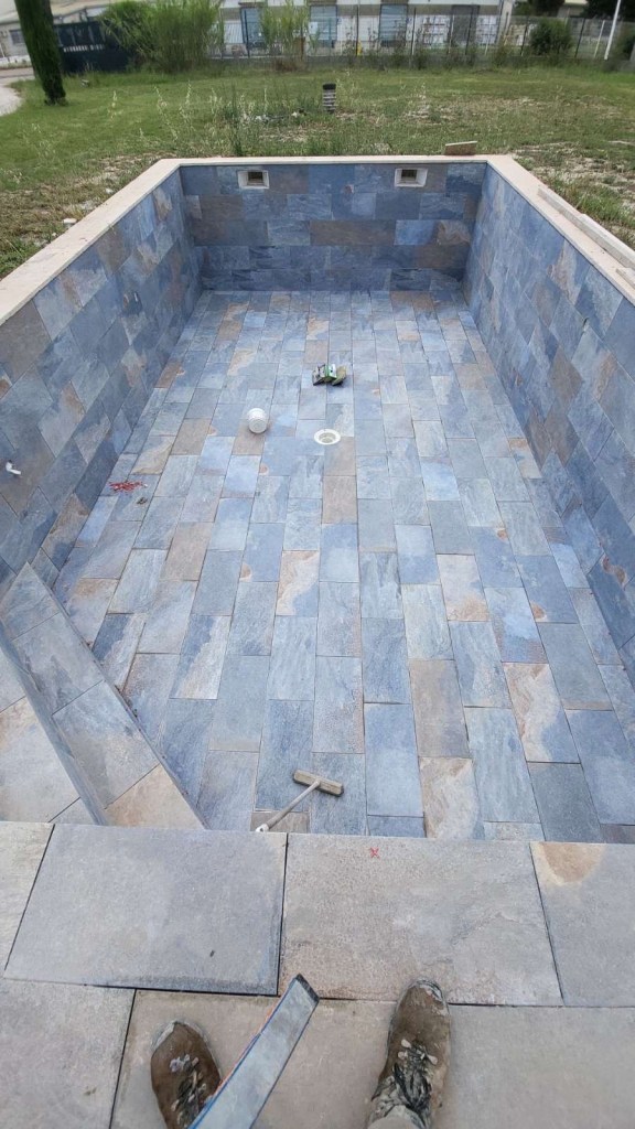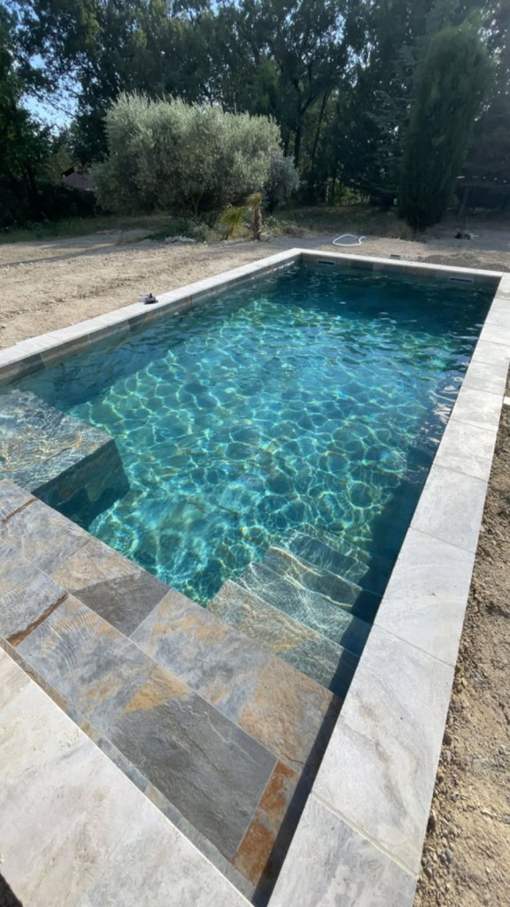 - Finitions et aménagements : margelles, plages, escaliers, dallage